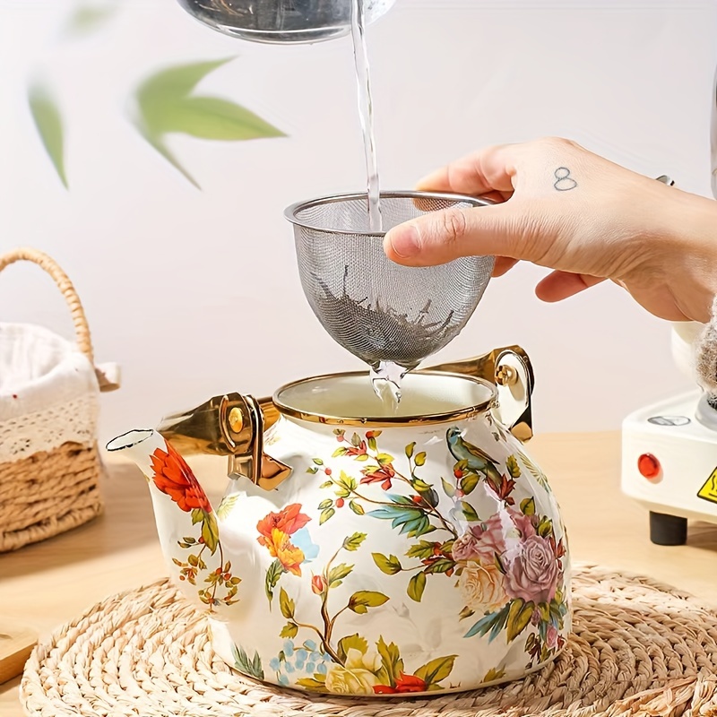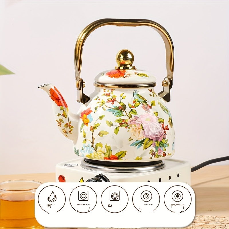 1 Set New Thickened Enamel 1.2L Teapot with Floral...